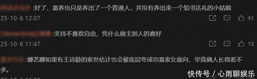 微博评论关了,转发底下堆满上千条带图的留言,有人拿她和那艺娜、傅首尔比,说她长得不怎么样还挑这挑那,有人说她装优雅,背地里看不起人,也有人夸周也,说人家靠自己吃饭,不像她靠爸妈,抖音上更乱,一堆人刷“闺蜜你怎么了”“王岳伦戴假发”,全是拿她开玩笑,他们不问真假,只觉得她凭什么被喜欢,小红书安静点,但不少人喊她道歉,也有中立的说月薪三千的人为时薪三千的事吵太荒唐,这话听着像讲理,其实帮了倒忙,让她更没地儿站。